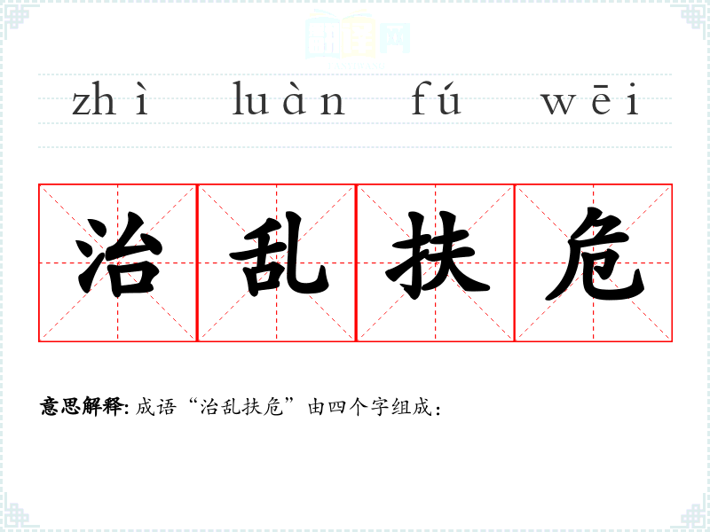 综合来看,“治乱扶危”指的是在混乱中治理、在困境中扶持,强调在危急时刻采取措施恢复秩序和稳定。