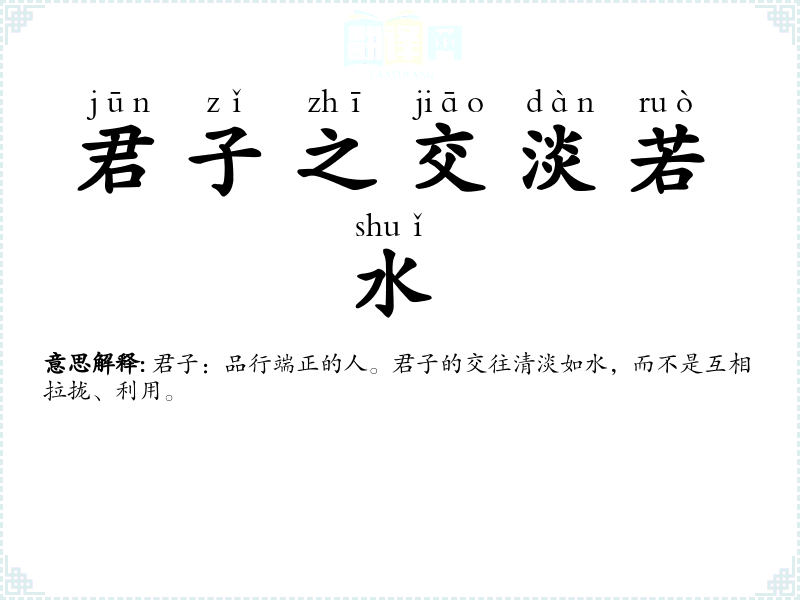 君子:品行端正的人。君子的交往清淡如水,而不是互相拉拢、利用。 |
