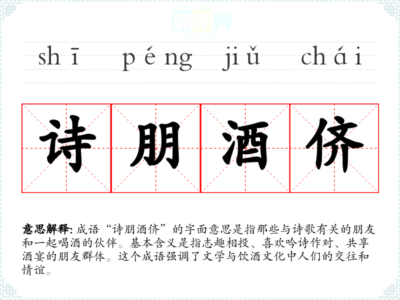 | 诗朋酒侪 | 侪:辈。在一起写诗喝酒的朋友。 |
