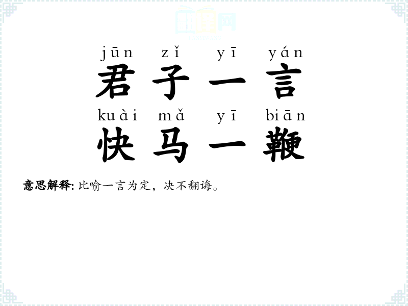 一句话说出了口,就是套上四匹马拉的车也难追上。指话说出口,就不能再收回,一定要算数。 |
