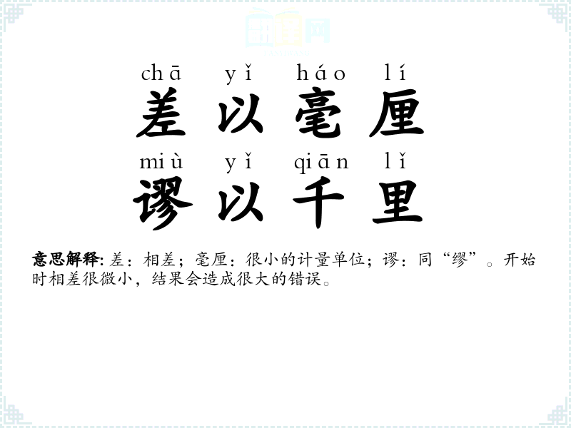 | 差若毫厘,谬以千里 |
