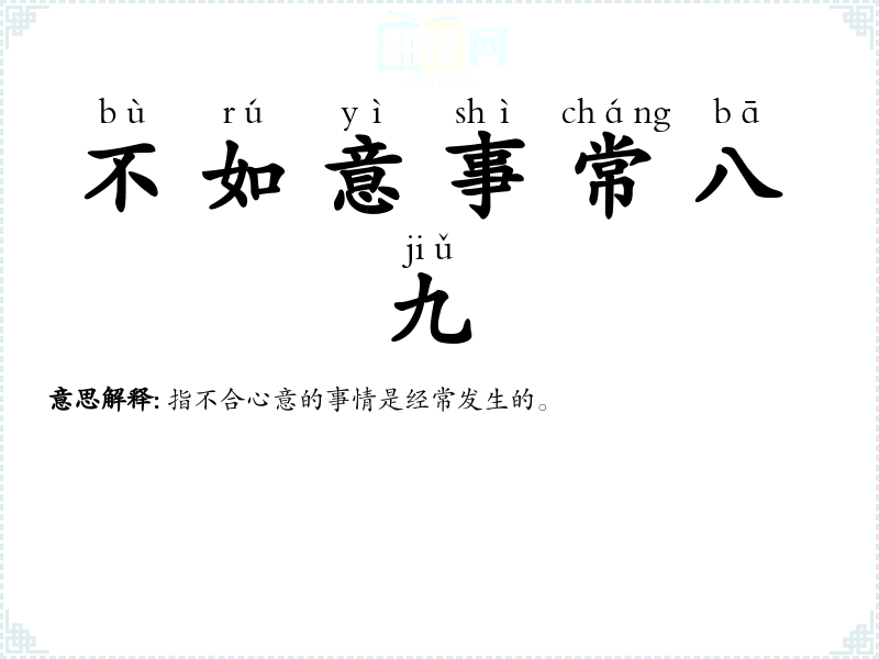 | 不如意事常八九 | 指不合心意的事情是经常发生的。 |