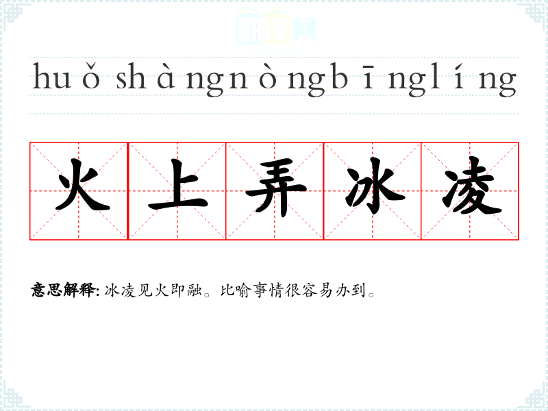 | 火上弄冰凌 | 冰凌见火即融。比喻事情很容易办到。 |