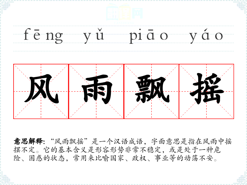 该成语源于古代文学,最早见于《左传》,其中描述了动荡的政治局势和不安定的环境。成语中“风雨”象征自然界的不安定,而“飘摇”则强调事物在动荡中难以保持稳定。成语通过形象化的描绘,生动地反映了局势的复杂与不安。