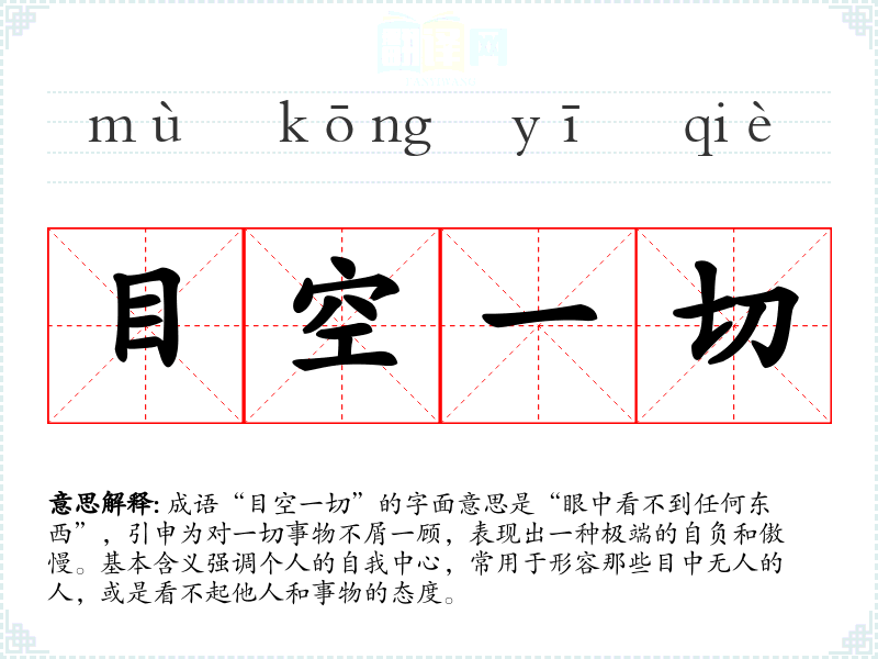 通过对“目空一切”的学,我认识到这个成语不仅是对傲慢态度的批判,更是对谦逊与尊重的呼唤。在语言学和表达中,它提醒我始终保持谦虚,尊重他人的意见和价值。