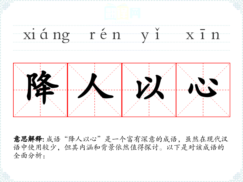 成语“降人以心”是一个富有深意的成语,虽然在现代汉语中使用较少,但其内涵和背景依然值得探讨。以下是对该成语的全面分析:
