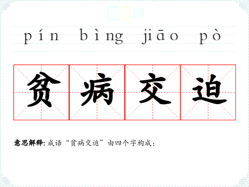 字面意思是形容一个人同时遭受贫穷和疾病的困扰,生活极其艰难。基本含义指的是人们在生活中面临的双重困境,常用来形容生活苦难和无奈的状态。