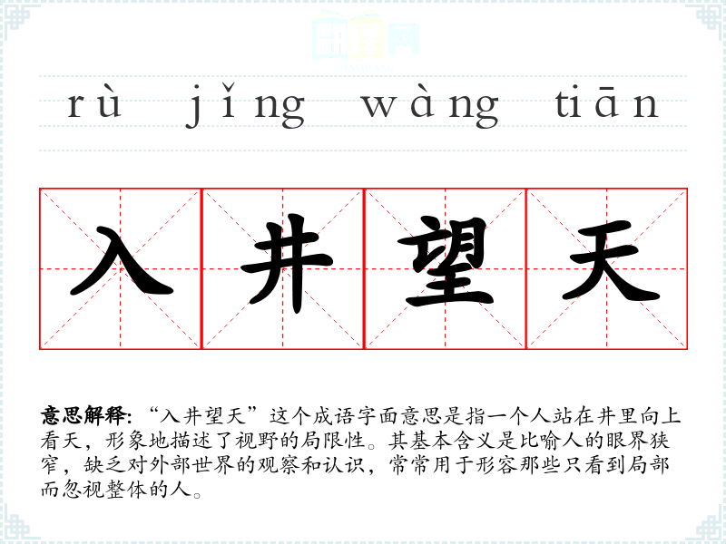 - 文学作品:在小说或散文中,作者可以用“入井望天”来形容人物的思想狭隘。