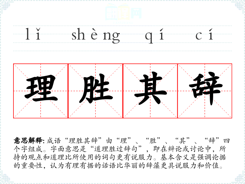 理不胜辞 道理不能胜过文辞。指由于不善于推理立论,尽管文辞丰富多彩,道理并不充分。