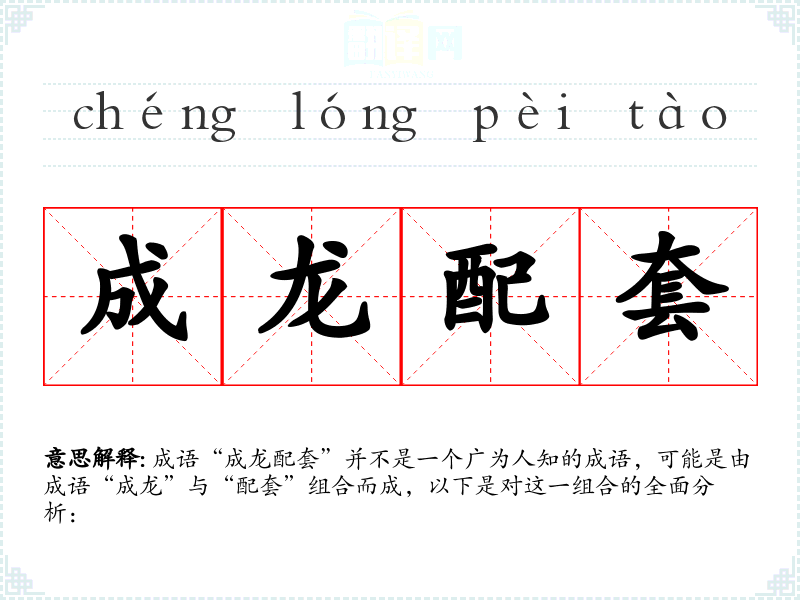 成语“成龙配套”并不是一个广为人知的成语,可能是由成语“成龙”与“配套”组合而成,以下是对这一组合的全面分析: