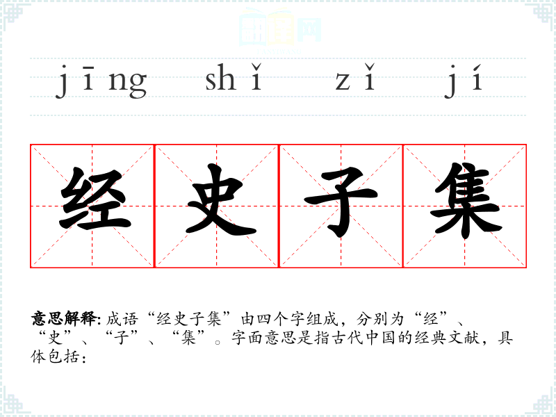 “经史子集”并不是古代文献中常见的成语,而是对**古代四大类文献的总结和归纳。这一分类法源于儒家文化的重视,尤其是在唐代以后,学者们对经典文献的整理与研究,使得这一说法逐渐被广泛接受。