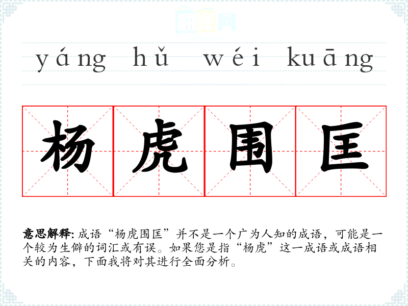 由于“杨虎围匡”并没有明确的历史背景或典故,可能是个别地方或个人的创造。如果是对“杨”和“虎”的分析,可以联想到古代文学作品中对虎的描写,象征着勇猛和力量。