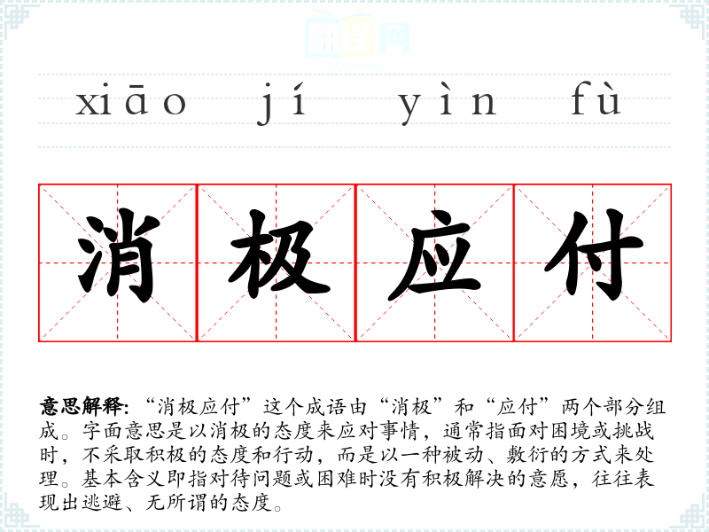 “消极应付”并没有明确的历史典故,但它的构成反映了现代社会对待压力和挑战的普遍心态。在快节奏的生活中,有些人选择对问题采取消极的应对方式,可能源于对失败的恐惧或对自身能力的怀疑。