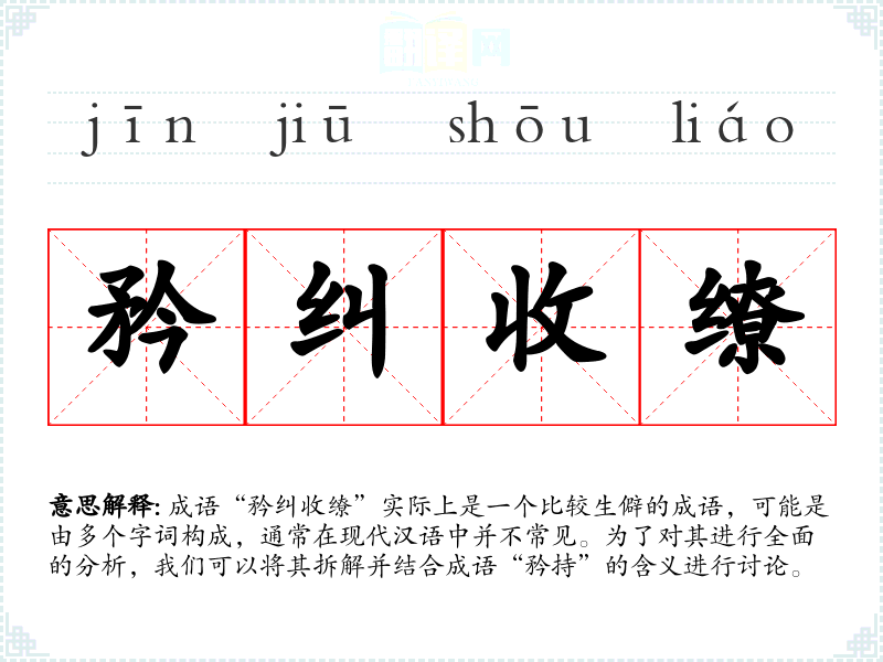 成语“矜纠收缭”实际上是一个比较生僻的成语,可能是由多个字词构成,通常在现代汉语中并不常见。为了对其进行全面的分析,我们可以将其拆解并结合成语“矜持”的含义进行讨论。