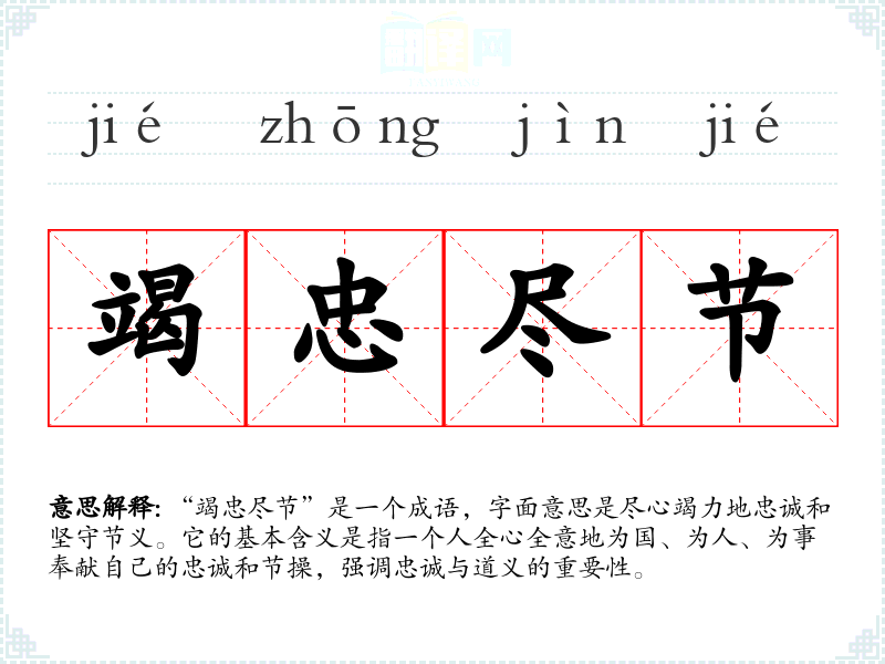| 竭忠尽节 | 竭尽忠诚和气节。 |