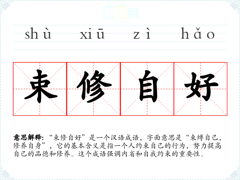 “束修自好”是一个汉语成语,字面意思是“束缚自己,修养自身”,它的基本含义是指一个人约束自己的行为,努力提高自己的品德和修养。这个成语强调内省和自我约束的重要性。