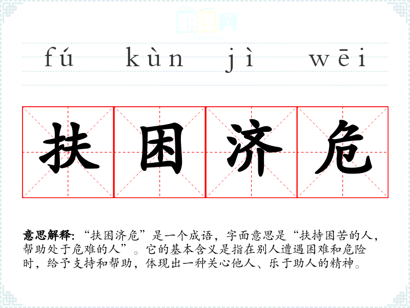 - 演讲:在慈善活动或公益演讲中,提到“扶困济危”可以激励更多人参与帮助他人。