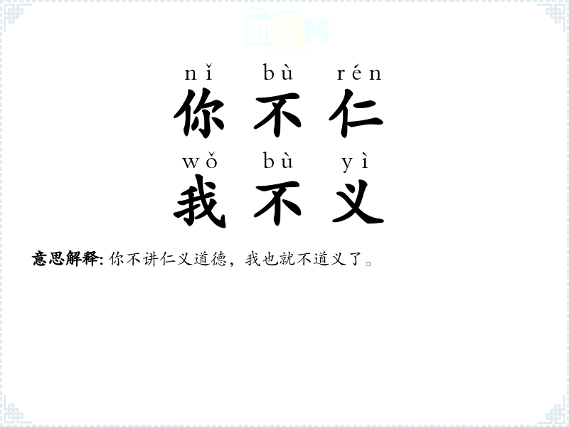 | 你不仁,我不义 | 你不讲仁义道德,我也就不道义了。 |