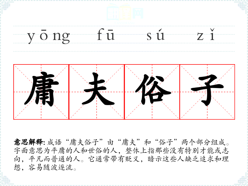 - 凡夫俗子:与“庸夫俗子”意思相近,强调世俗的人。
