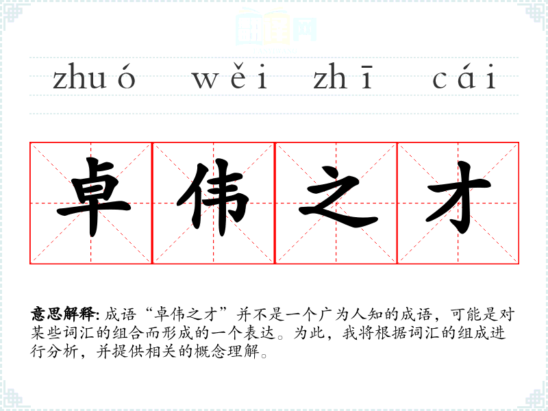 成语“卓伟之才”并不是一个广为人知的成语,可能是对某些词汇的组合而形成的一个表达。为此,我将根据词汇的组成进行分析,并提供相关的概念理解。