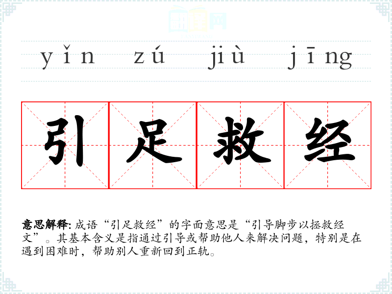 成语“引足救经”的字面意思是“引导脚步以拯救经文”。其基本含义是指通过引导或帮助他人来解决问题,特别是在遇到困难时,帮助别人重新回到正轨。