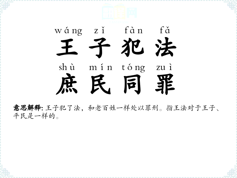 王子犯了法,和老百姓一样处以罪刑。指王法对于王子、平民是一样的。 |