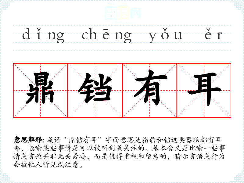 - 日常对话:朋友间的提醒,比如在讨论敏感话题时,可以说“鼎铛有耳,注意点儿。”
