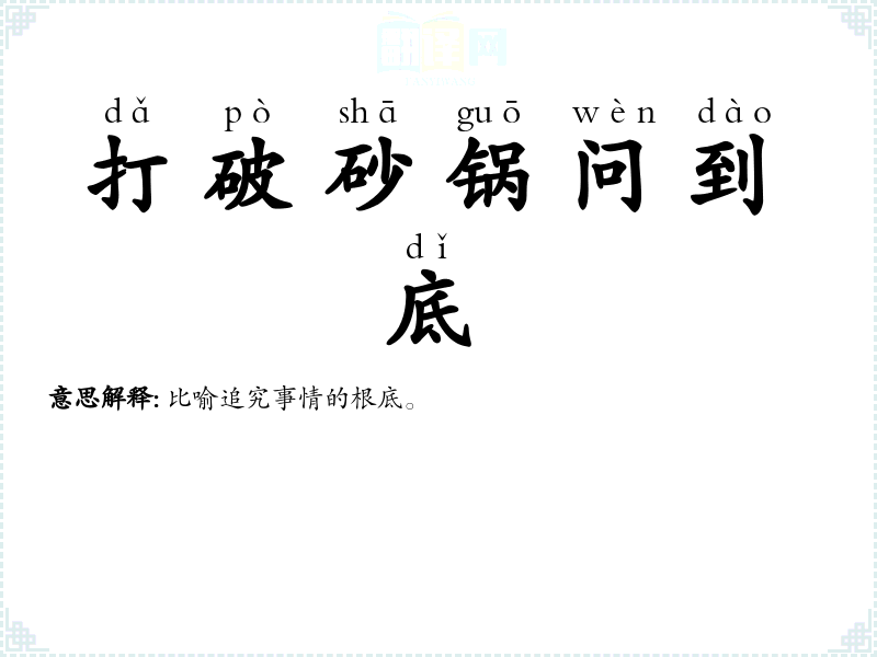 | 打破砂锅问到底 | 比喻追究事情的根底。 |