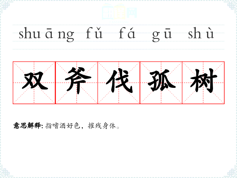 | 双斧伐孤树 | 指嗜酒好色,摧残身体。 |