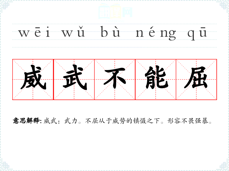 威武:武力。不屈从于威势的镇慑之下。形容不畏强暴。
