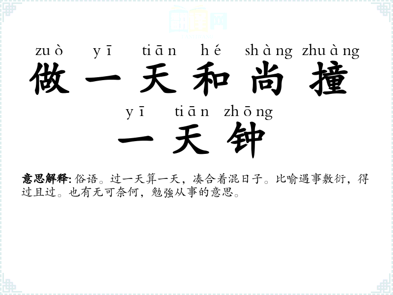 俗语。过一天算一天,凑合着混日子。比喻遇事敷衍,得过且过。也有无可奈何,勉強从事的意思。 |