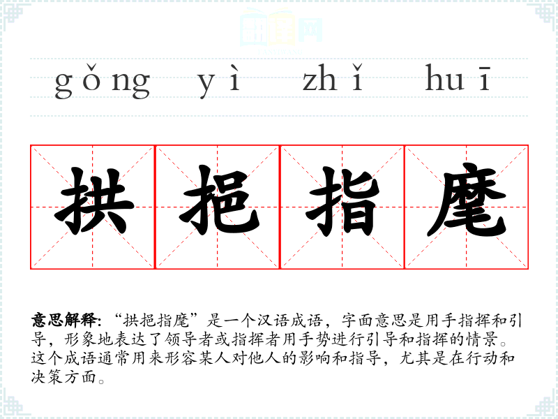在**传统文化中,领导者的指引被视为成功的重要因素。成语“拱挹指麾”反映了这种文化背景,强调了领导者在团队中的引导作用。在现代社会,这个成语的意义依旧适用,尤其是在企业管理和团队合作中。