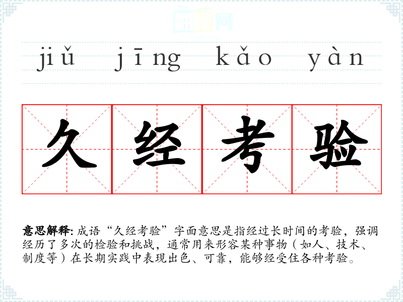 | 久经考验 | 经过长久的考查验证。 |