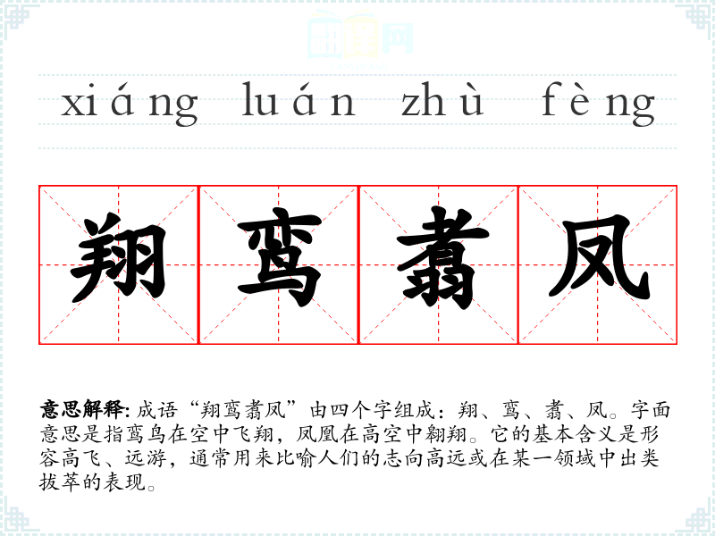 成语“翔鸾翥凤”由四个字组成:翔、鸾、翥、凤。字面意思是指鸾鸟在空中飞翔,凤凰在高空中翱翔。它的基本含义是形容高飞、远游,通常用来比喻人们的志向高远或在某一领域中出类拔萃的表现。