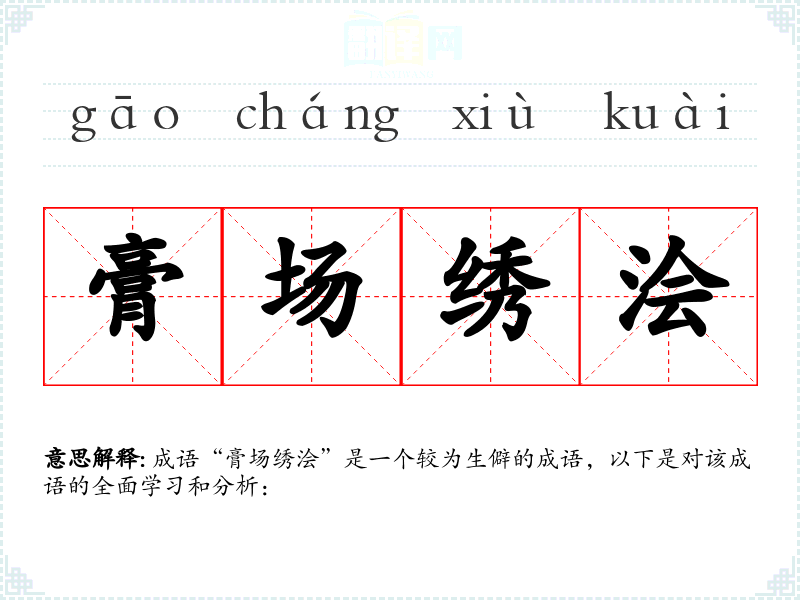 成语“膏场绣浍”是一个较为生僻的成语,以下是对该成语的全面学*和分析:
