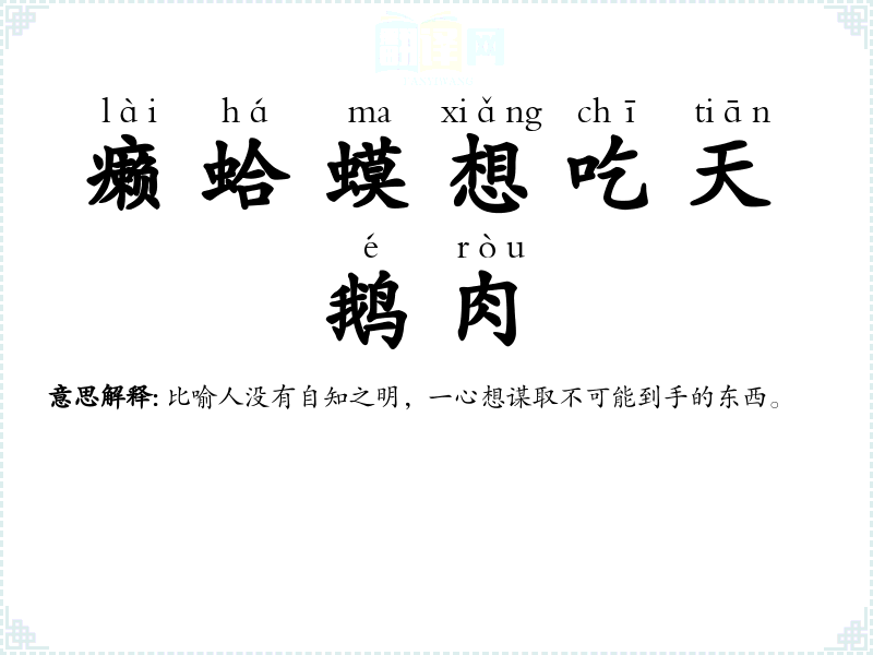 比喻人没有自知之明,一心想得到不能到手的东西。痴心妄想。 |
