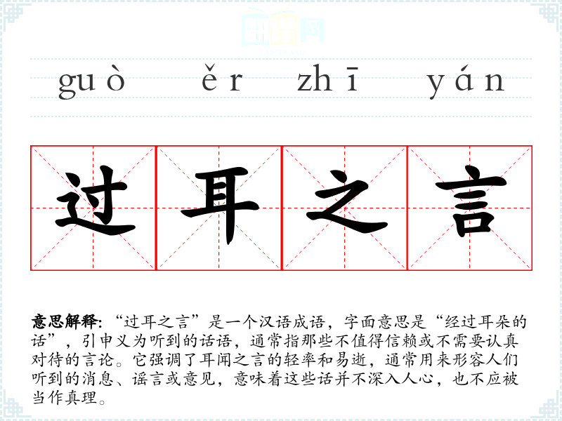 在英语中,与“过耳之言”相似的表达是“hearsay”,同样指未经证实的传言或意见。不同文化中对这一现象的关注程度各异,但普遍存在对信息真实性的追求。