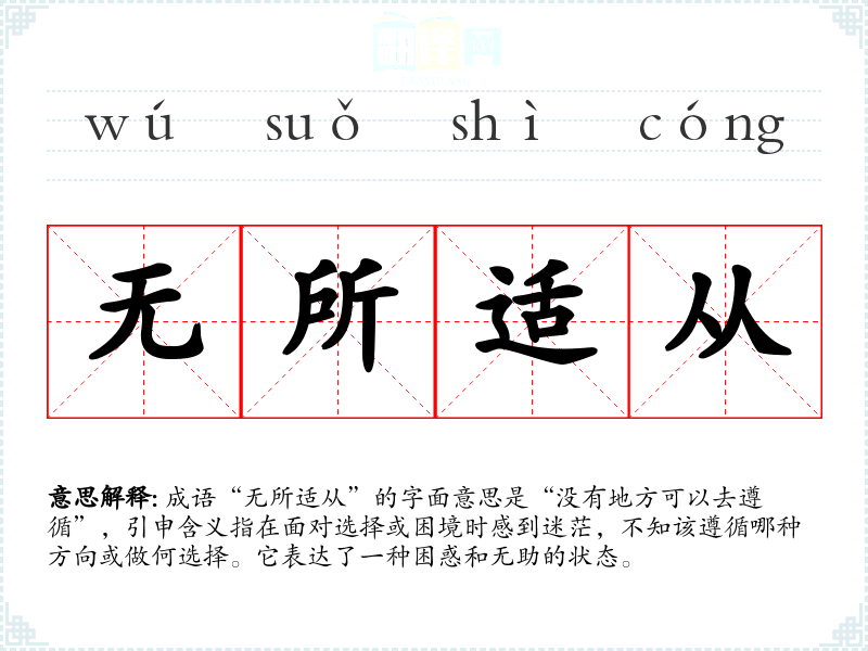 何去何从 去:离开;从:跟随。离开哪儿,走向哪儿。多指在重大问题上选择什么方向。