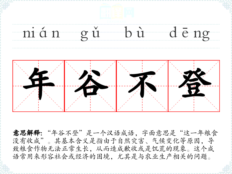 | 年谷不登 | 年谷:一牛收获的谷物;登:成熟,完成。指年成很差,荒年。 |