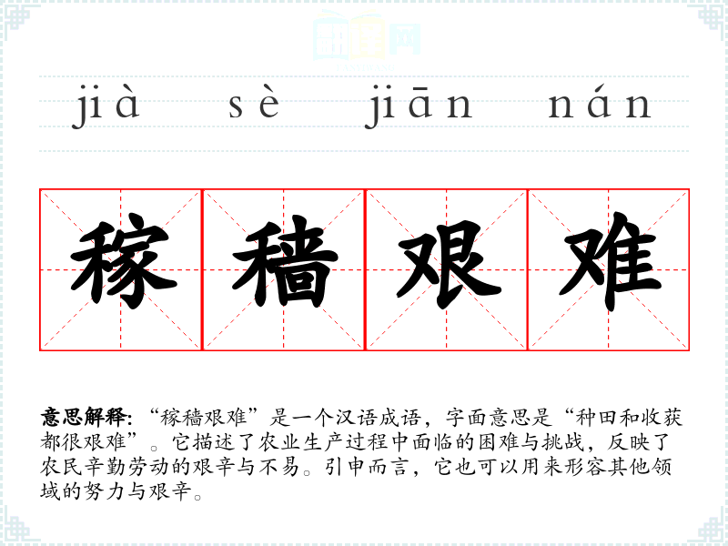 “稼穑艰难”是一个汉语成语,字面意思是“种田和收获都很艰难”。它描述了农业生产过程中面临的困难与挑战,反映了农民辛勤劳动的艰辛与不易。引申而言,它也可以用来形容其他领域的努力与艰辛。