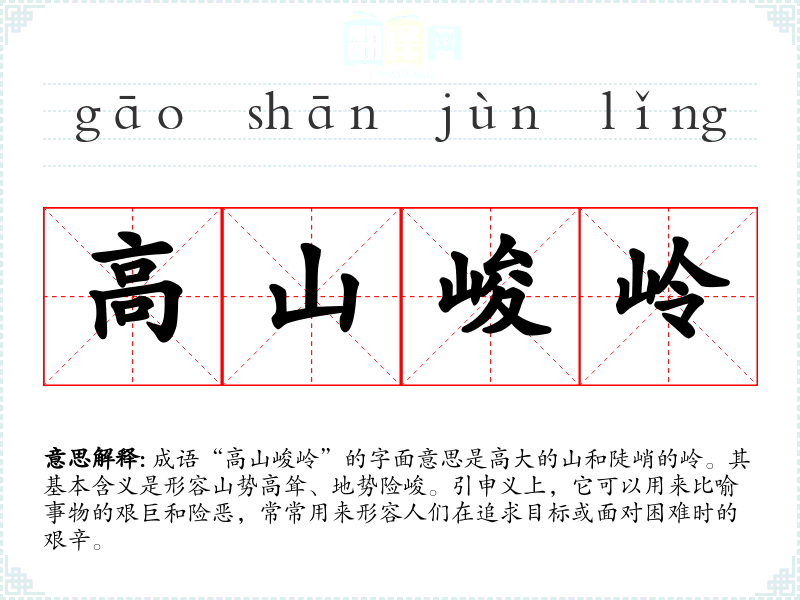 在**文化中,高山常常象征着坚韧和不屈不挠的精神,峻岭则代表着挑战和困难。在现代社会,这一成语常用于激励人们勇敢面对生活中的种种挑战,传达一种不怕艰难、勇往直前的态度。