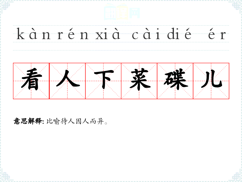 | 看人下菜碟儿 | 比喻待人因人而异。 |