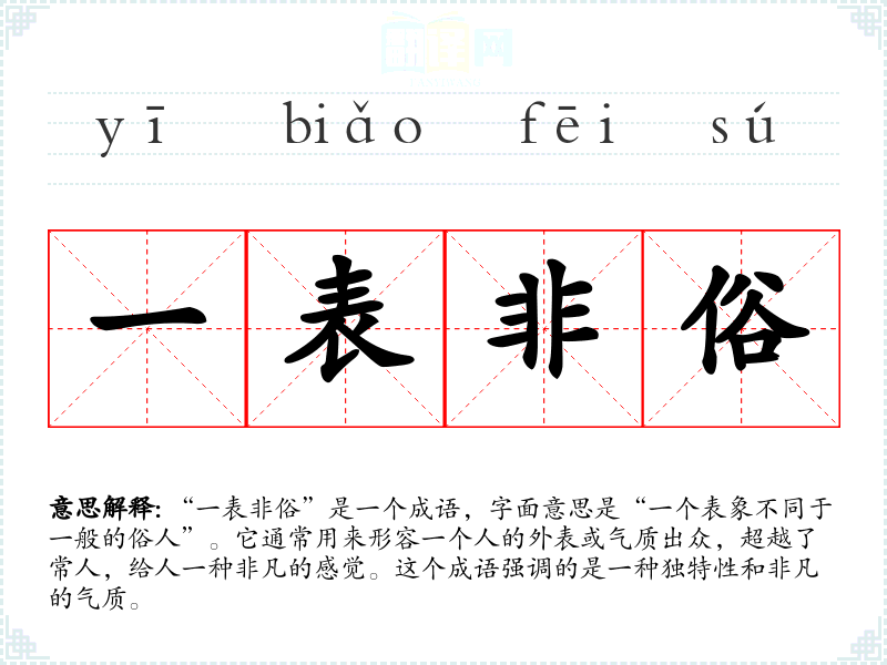 - 日常对话:在社交场合中,可以用来赞美他人的外貌或气质,如:“你今天的打扮真是一表非俗,吸引了不少目光。”