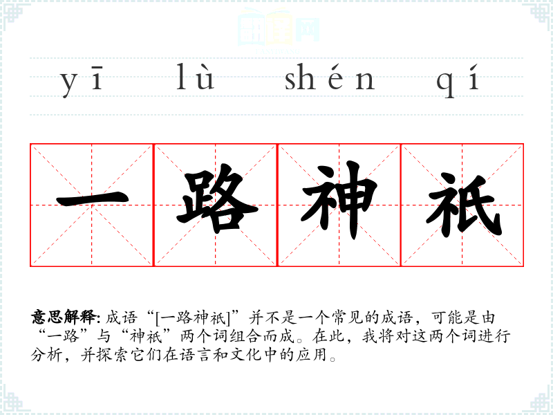 结合来看,“一路神祇”可以理解为在某个方向上,伴随着神灵的庇护或指引,象征着顺利、吉祥的旅途。