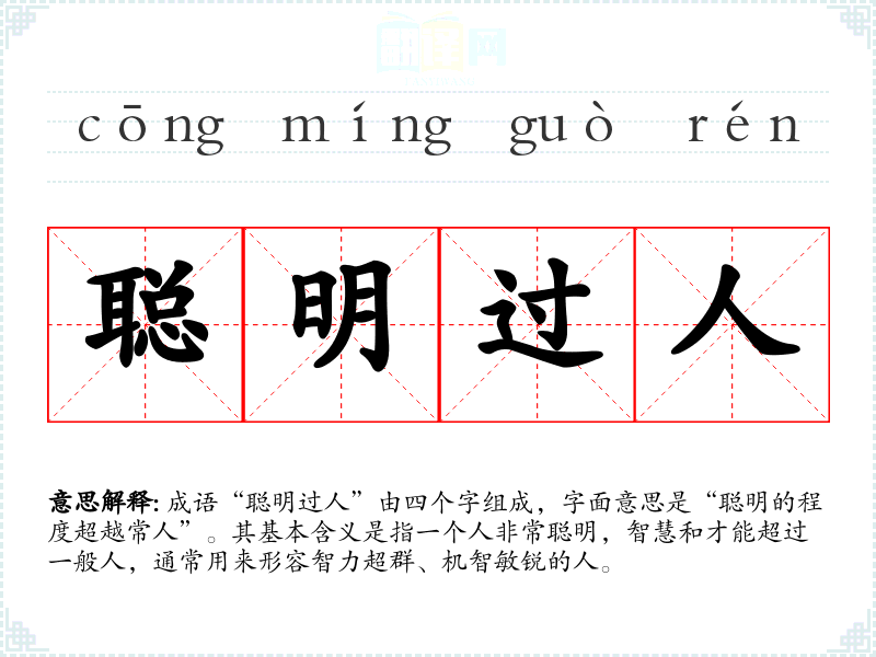 成语“聪明过人”由四个字组成,字面意思是“聪明的程度超越常人”。其基本含义是指一个人非常聪明,智慧和才能超过一般人,通常用来形容智力超群、机智敏锐的人。