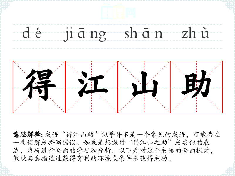 成语“得江山助”似乎并不是一个常见的成语,可能存在一些误解或拼写错误。如果是想探讨“得江山之助”或类似的表达,我将进行全面的学*和分析。以下是对这个成语的全面探讨,假设其意指通过获得有利的环境或条件来获得成功。