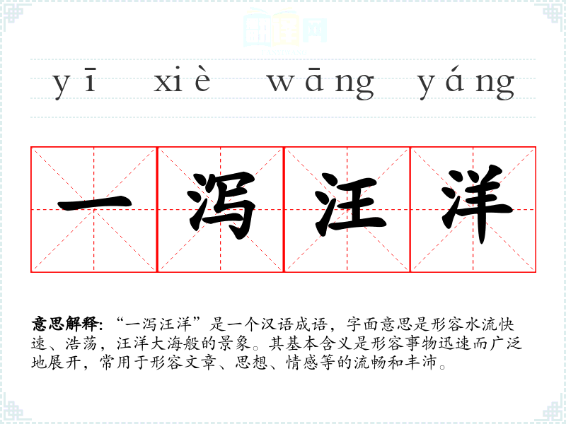 - 文学作品:用来描述作者的文笔流畅,如:“他的文章如同一泻汪洋,读起来令人神往。”