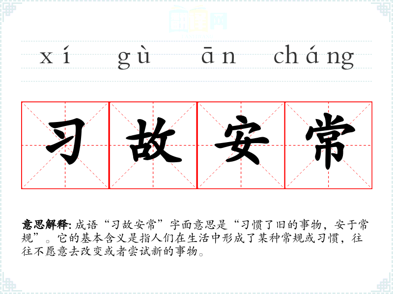 | 习故安常 | 指习惯于规。 |