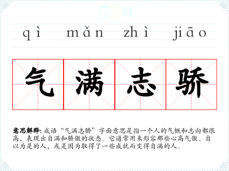 成语“气满志骄”字面意思是指一个人的气概和志向都很高,表现出自满和骄傲的状态。它通常用来形容那些心高气傲、自以为是的人,或是因为取得了一些成就而变得自满的人。