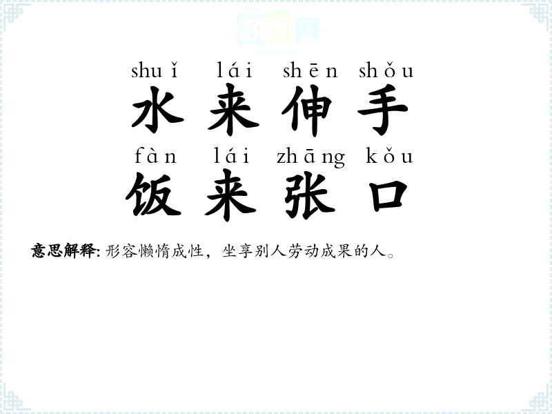 一口粥,一口饭,都应当想到来得不容易。劝告人们要尊重劳动,爱惜粮食。 |